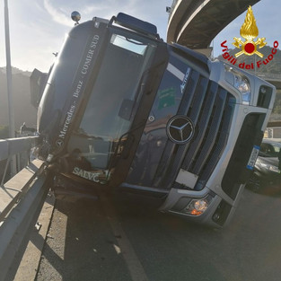 Tir con rimorchio perde il controllo nel tratto autostradale tra gli svincoli Boccetta e Giostra